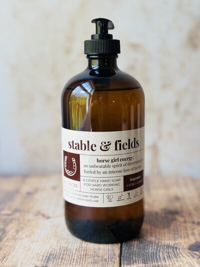 Organic castile soap fragranced with a citrus blend and basil in a re-fillable pump glass bottle